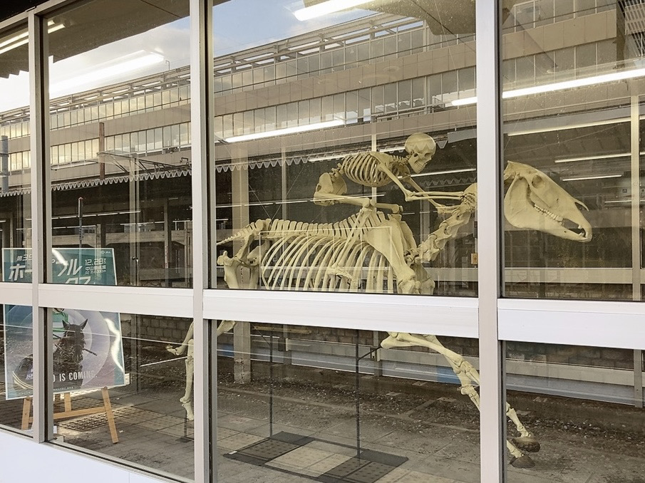 JR小倉駅ホームに『馬』と『騎手』の骨? 特別企画「ぷらっとミュージアム」【北九州市小倉北区】