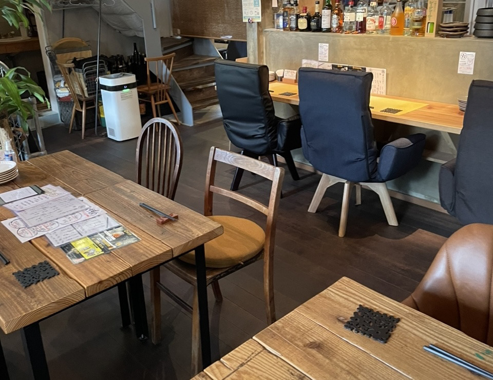なんと言っても特筆すべきは、カウンター4席は全て1人掛けソファーでゆったりしていること。テーブル席にもソファーが使われている席があり、ついつい長居して