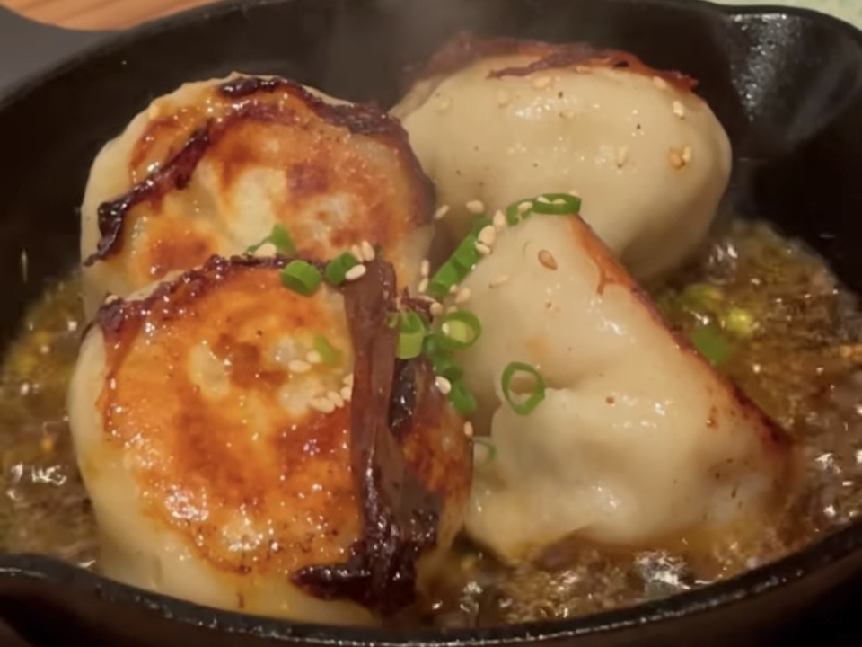 「餃包(ぎょうぱお)」は、餃子に似た餡を小籠包のような皮に包んだもの。鉄板の上でタレをかければ、ジュージューと臨場感があるサウンドが響きわたります。