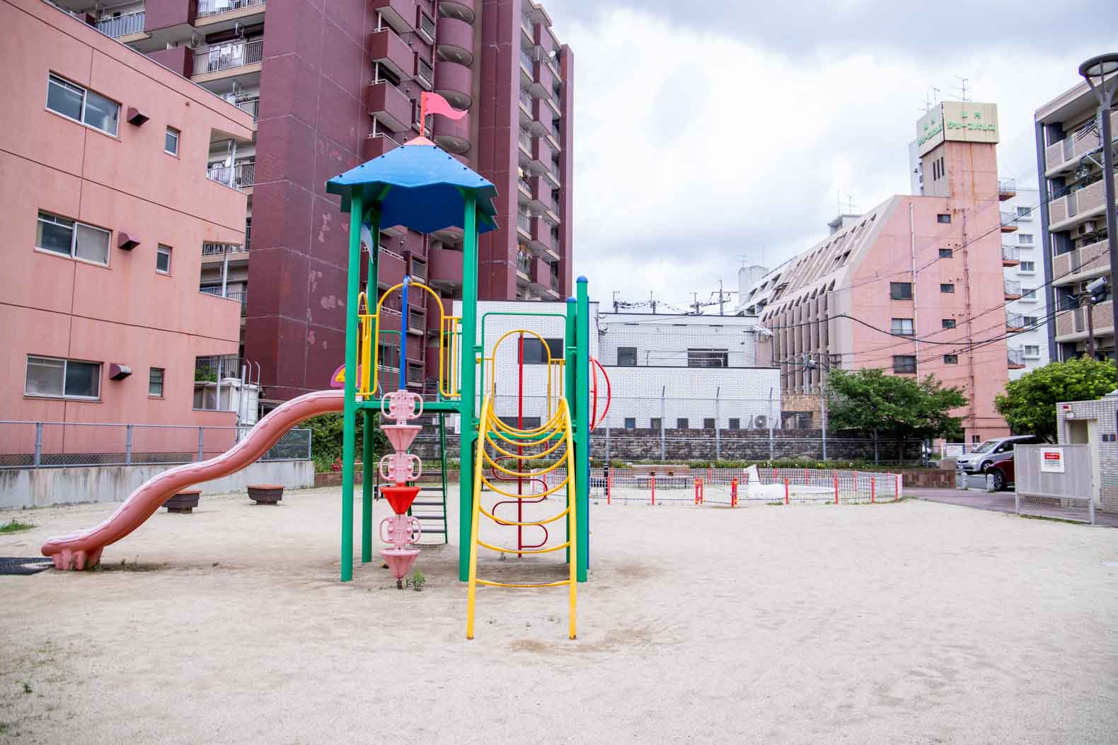 JR小倉駅から徒歩7分。ミクニワールドスタジアム入り口の正面にあり、砂利や土がない珍しい公園「浅野町緑地」が第3位。
