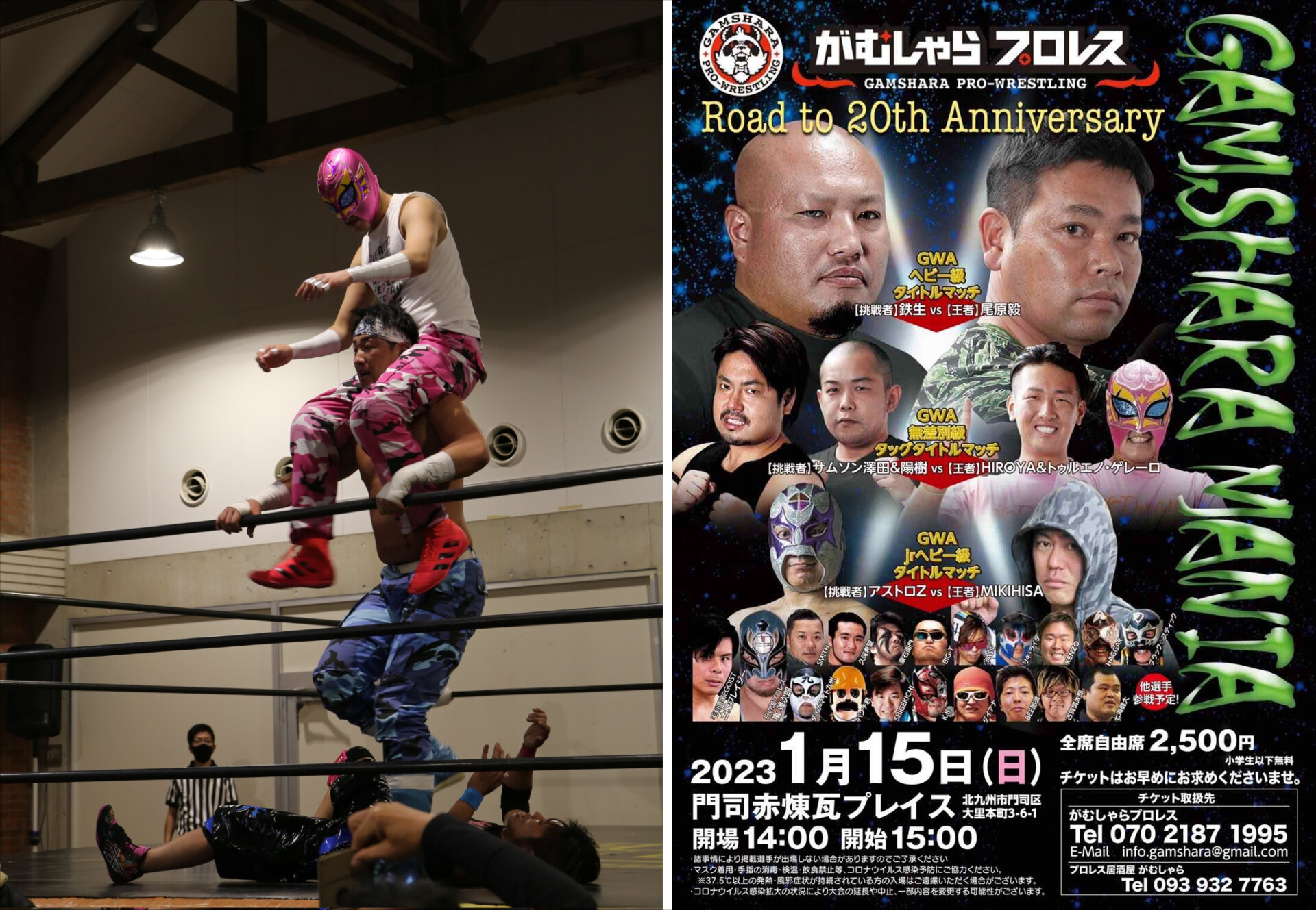 がむしゃらプロレスは今年で設立20周年のメモリアルイヤーを迎え、新年一発目のスペシャルイベントが、1月15日に門司赤煉瓦プレイスで開催されます。HIROYA選手が出場するGWA無差別級タッグタイトルマッチに加え、GWA Jr.ヘビー級タイトルマッチ、GWAヘビー級タイトルマッチの3大タイトルがいよいよクライマックスを迎えるとのこと。