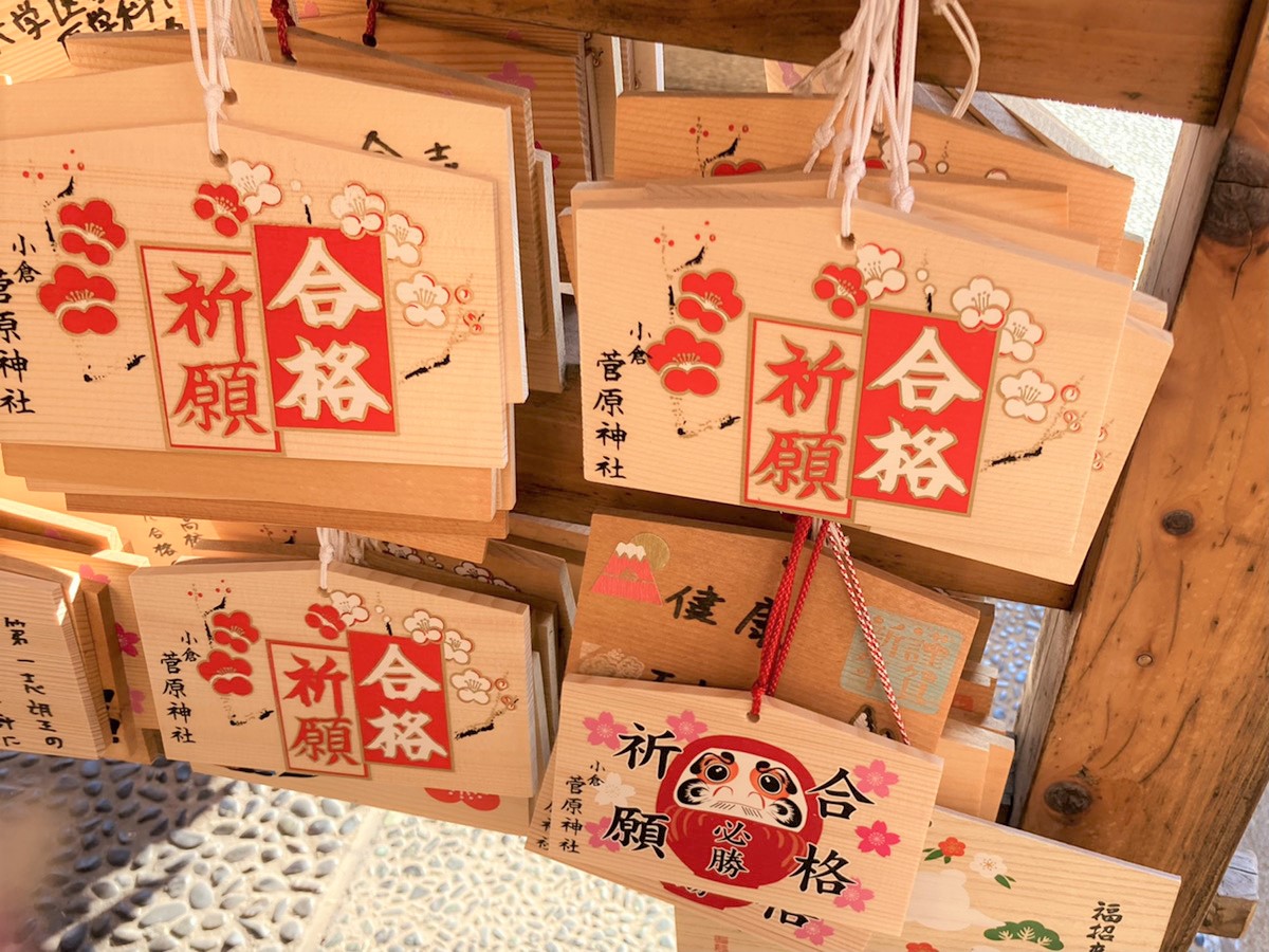 境内の横には、自分自身に活を入れるようなものから、家族や友人の合格を願うものまで、願いが込められたたくさんの絵馬がかけられていました。