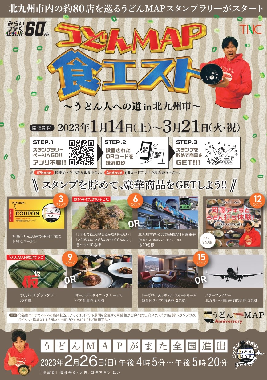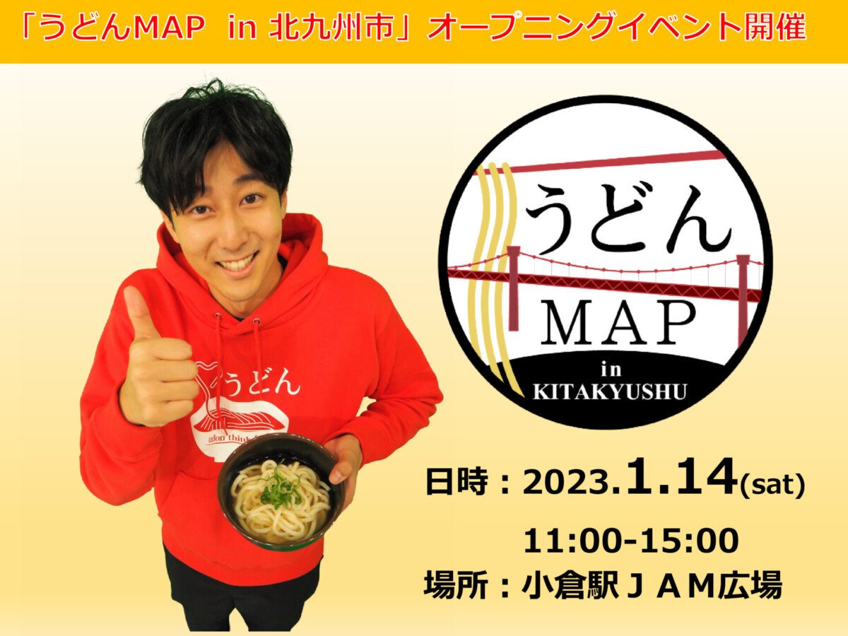 北九州市の代表的な食のひとつである「うどん」とテレビ西日本「ももち浜ストア」内で放送中の「うどんMAP」がコラボレーションしたイベント「うどんMAP in 北九州市」が1月14日からスタートします。