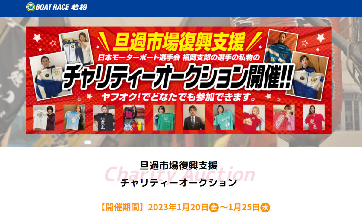 1月20日から25日まで、日本モーターボート選手会福岡支部の選手たちによる『旦過市場』復興支援チャリティーオークションがヤフオク!で開催されます。