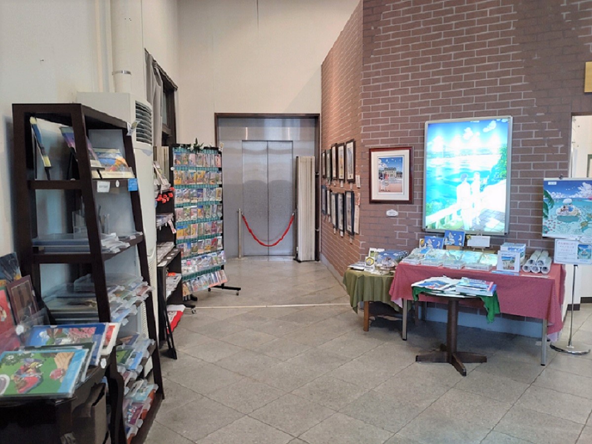 まず施設内に入ると販売コーナーがあり、ポストカードやイラスト作品集、カレンダーもあり、壁掛けや卓上などオリジナルグッズを豊富に取り扱っています。