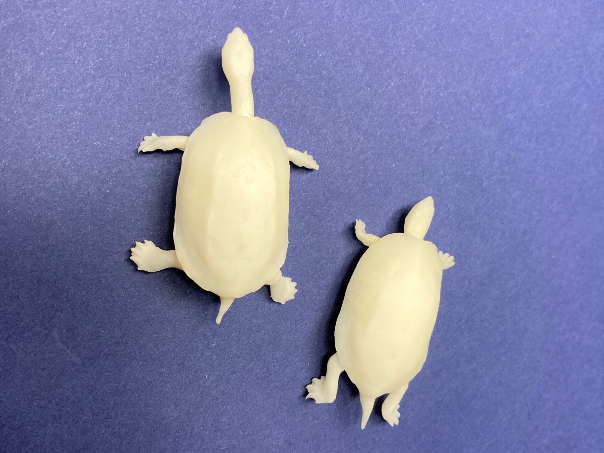 カメについての話を聞きながら、模型に色を塗って、カメの違いを学んでいきます。