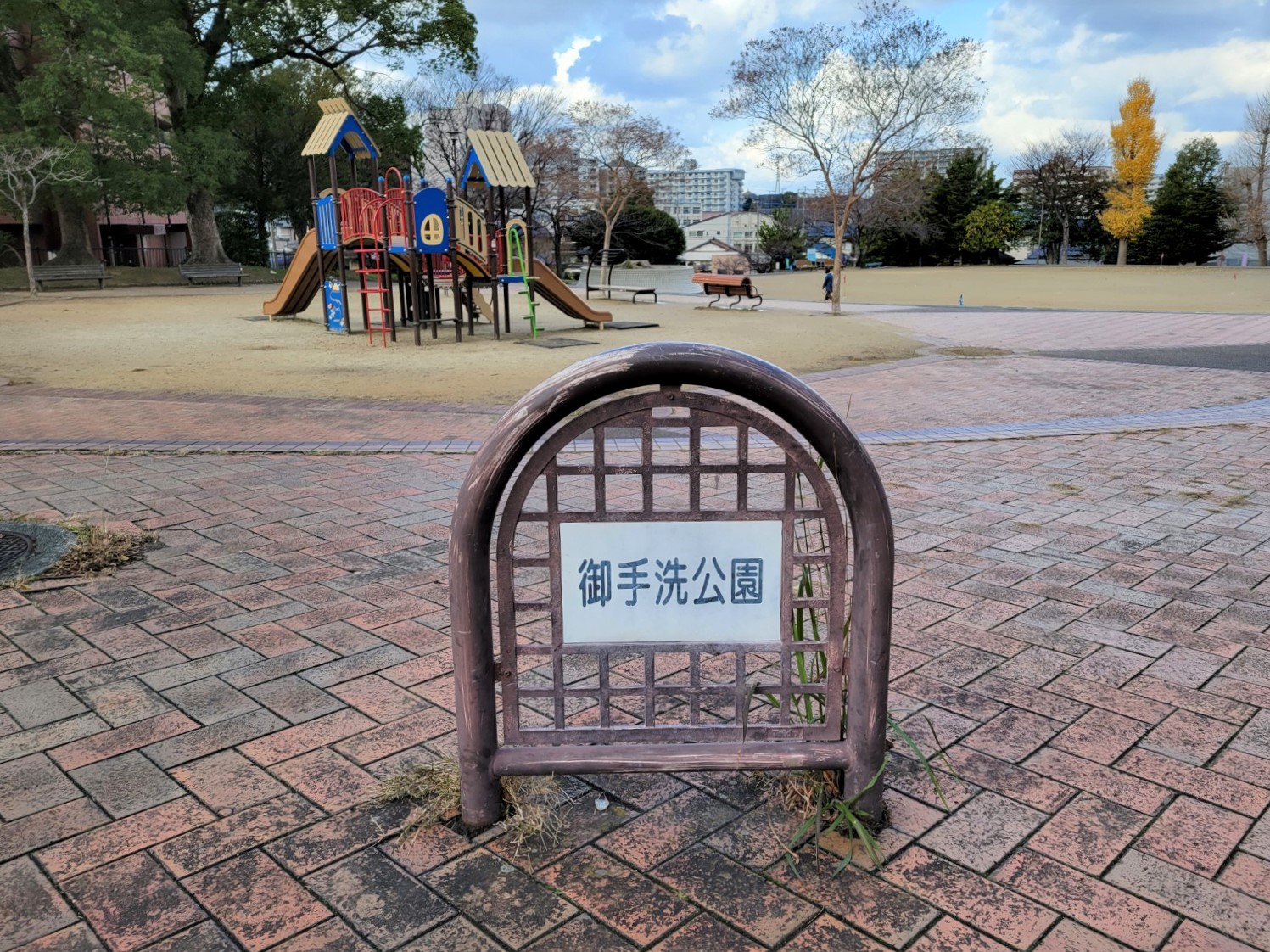 イオンタウン黒崎の斜め向かい、サンキュードラッグ 筒井町薬局の隣にある「御手洗公園」。