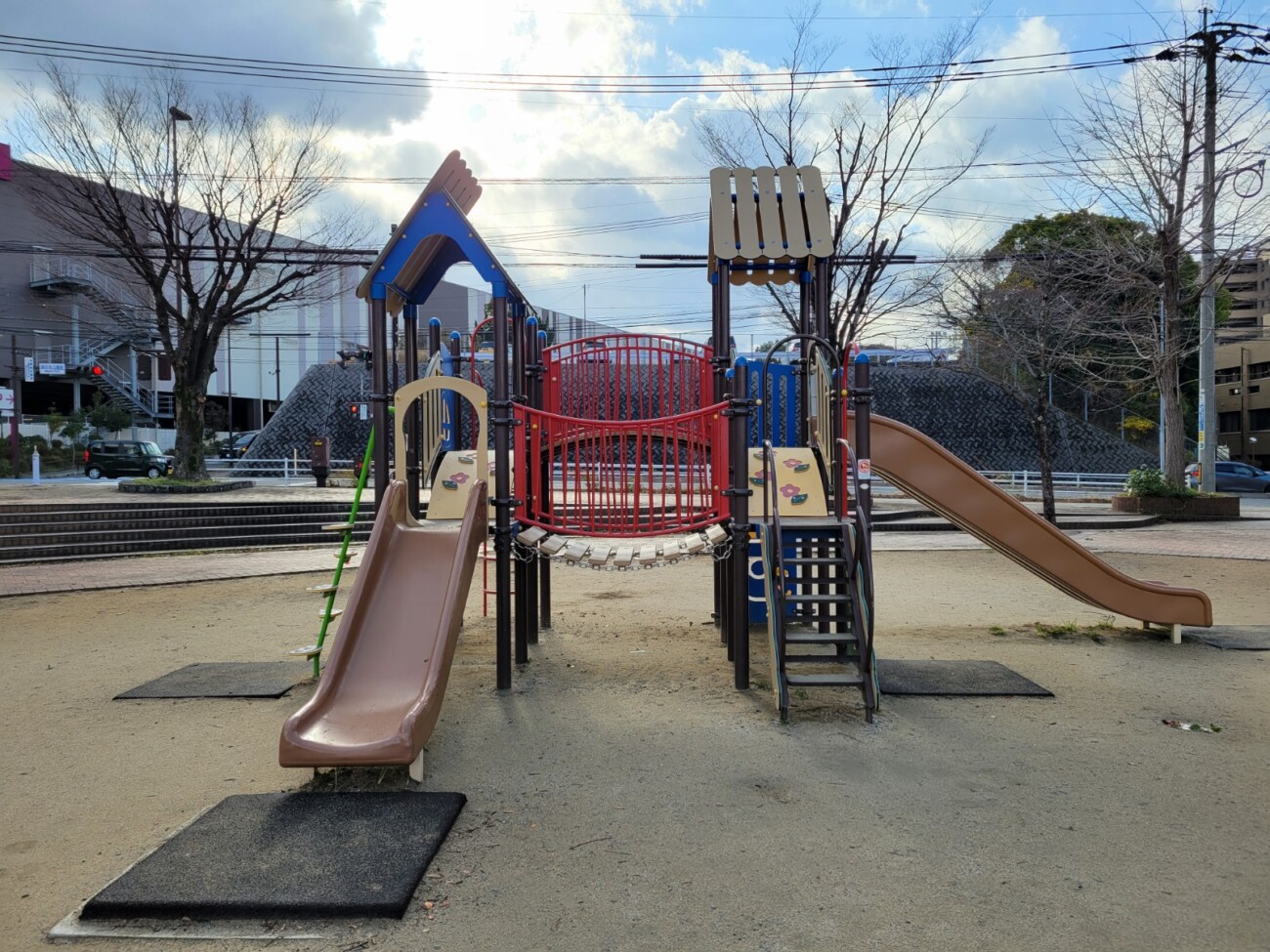 遊具は少なめの小さな公園ですが、近くに住宅も多いため、買い物の行き帰りに立ち寄る親子の姿もよく見られます。
