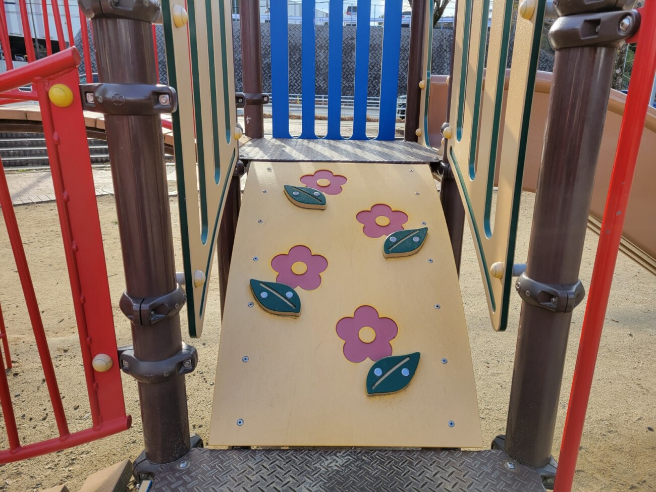 ステップの形がかわいらしい小さな階段など、いろいろな場所からすべり台に向かってのぼることができます。