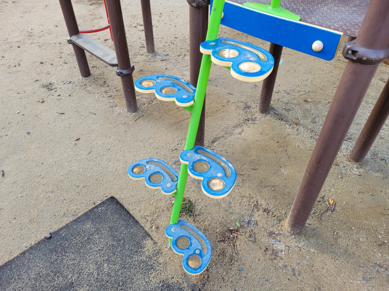 遊具広場とグラウンドをつなぐ階段部分は座れるようになっているので、天気がいい日は腰かけてのんびりするのもよさそうですね。