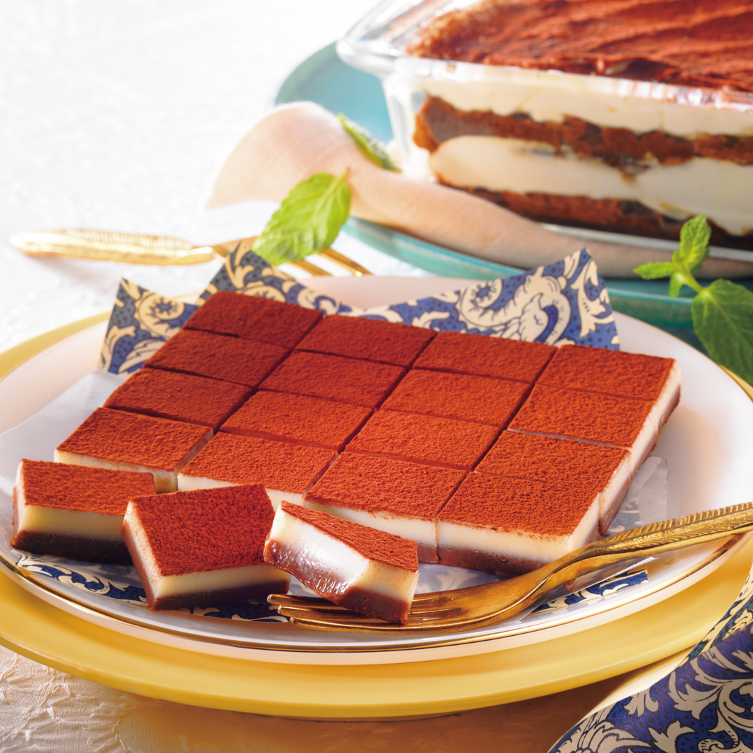 イタリアンフェアの期間限定・数量商品の「生チョコレート[ティラミス]」は、ティラミスをイメージ。マスカルポーネチーズのパウダーを入れたホワイトチョコレートのガナッシュと、コーヒーとコーヒーリキュール入りのガナッシュを重ねた2層にココアパウダーがかけられたもの。チーズのコクとコーヒーの味わいが、まるでティラミスを食べているかのようなんだそう。