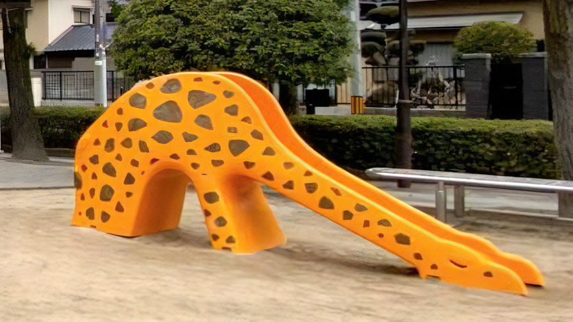 公園内には、すべり台や鉄棒、砂場などの遊具がありました。