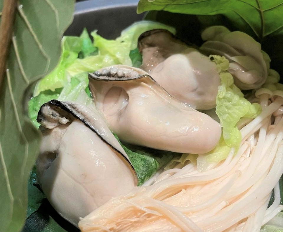 牡蠣のシーズンにぜひ食べたいのが「牡蠣の朴葉酒蒸し」です。朴葉の香りを纏ったプリプリな牡蠣をポン酢でいただけば口の中で弾け飛びます。