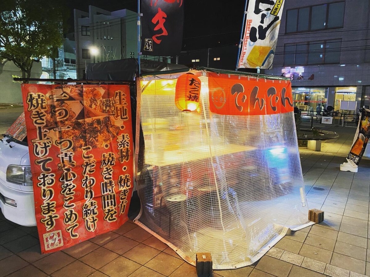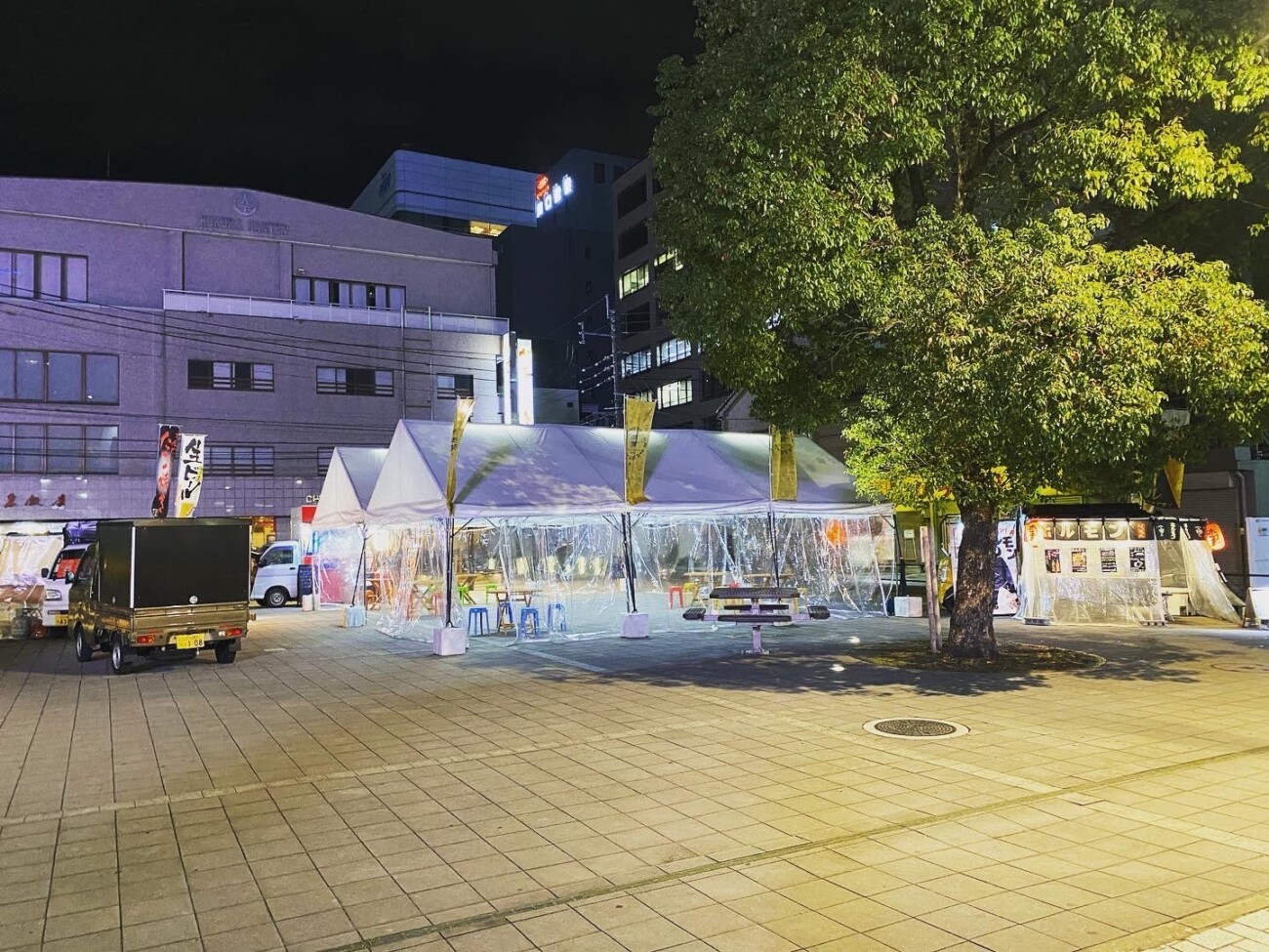 2022年4月22日にオープンした「堺町公園屋台村」(小倉北区堺町1-7)。2月末までテント営業を実施しています。