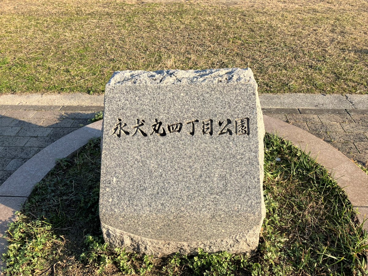 西鉄バス「永犬丸中学校前」バス停で下車し、徒歩で「業務スーパー永犬丸店」を目指すと、隣に見えてくるのが「永犬丸四丁目公園」です。