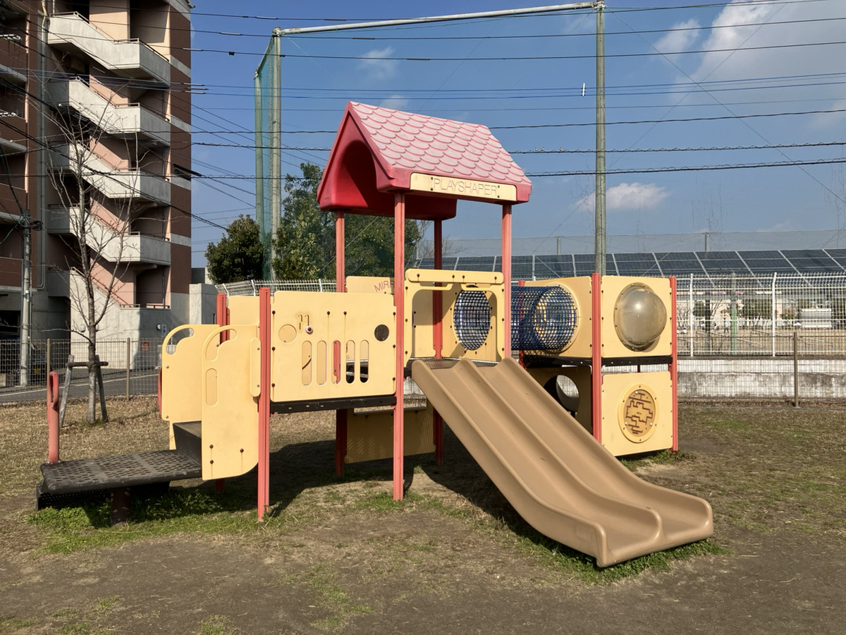 大きな遊具は1つで、小さい子ども向けのすべり台が3本ついています。