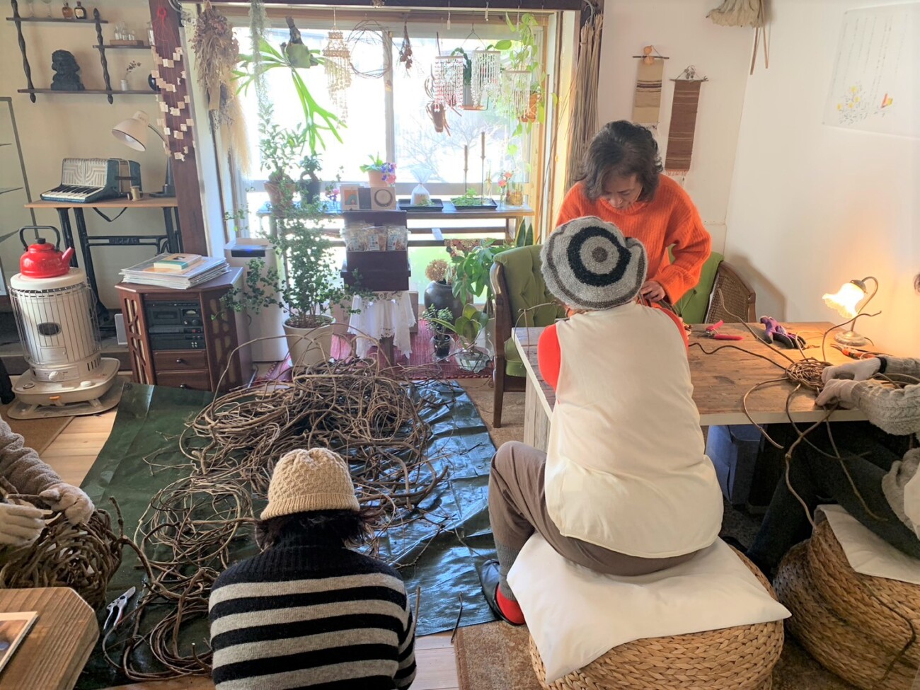 2月は「編み編みちくちくの会」「書物を語る会」を企画。取材当日は、講師を招いての「つる籠あみワークショップ」が開催されていて、皆さん黙々と作品と向き合っていました。