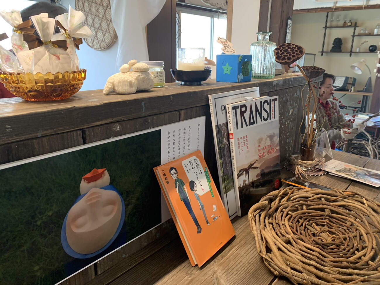知人や友人の大工さんと一緒に古民家を改装したという店内は、店主のセンスが光る雑貨やインテリアが心地よいバランスで配置されています。
