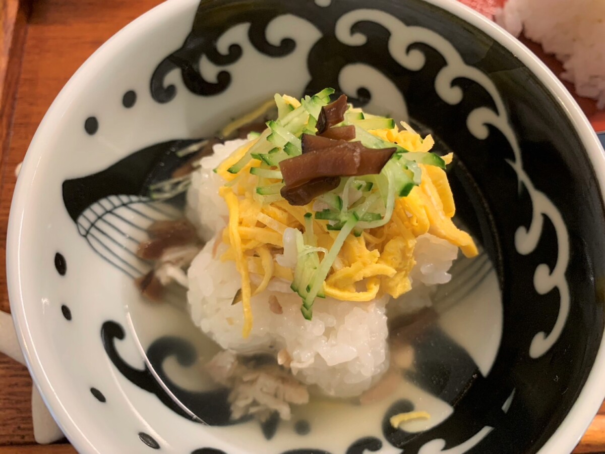 Cafe umiの鶏飯のスープの特徴は鶏ガラ、生姜、天然塩、椎茸ダシに島の名産「たんかん」の陳皮がアクセント。爽やかな香りが、鶏飯をよりいっそう美味しくひきたてていました。