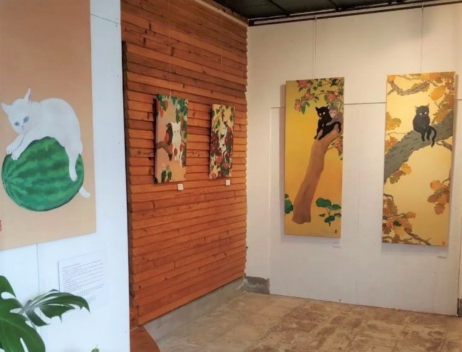 2022年3月にグランドオープンした後、「ひまわり画廊」の桃坂先生(ひまわり絵画教室主催者)と、その仲間との3人展を開催。フランスの街並みや静物画など、ヨーロッパの雰囲気を感じる作品が展示されていました。