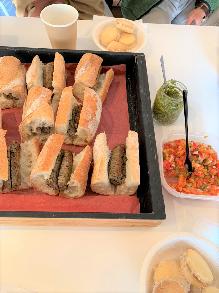 会期中、アルゼンチンの文化にふれながら作品をより楽しむための会が開催され、マルセロさん自らが故郷のソールフード「チョリパン」と「マテ茶」を振る舞いました。