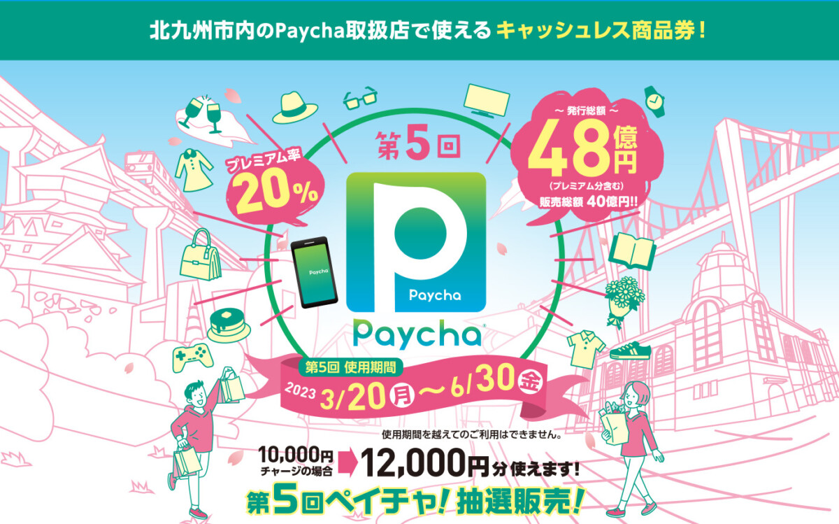 北九州商工会議所が発行するプレミアム付きキャッシュレス商品券「Paycha(ペイチャ)」。5回目の販売が決定しました。