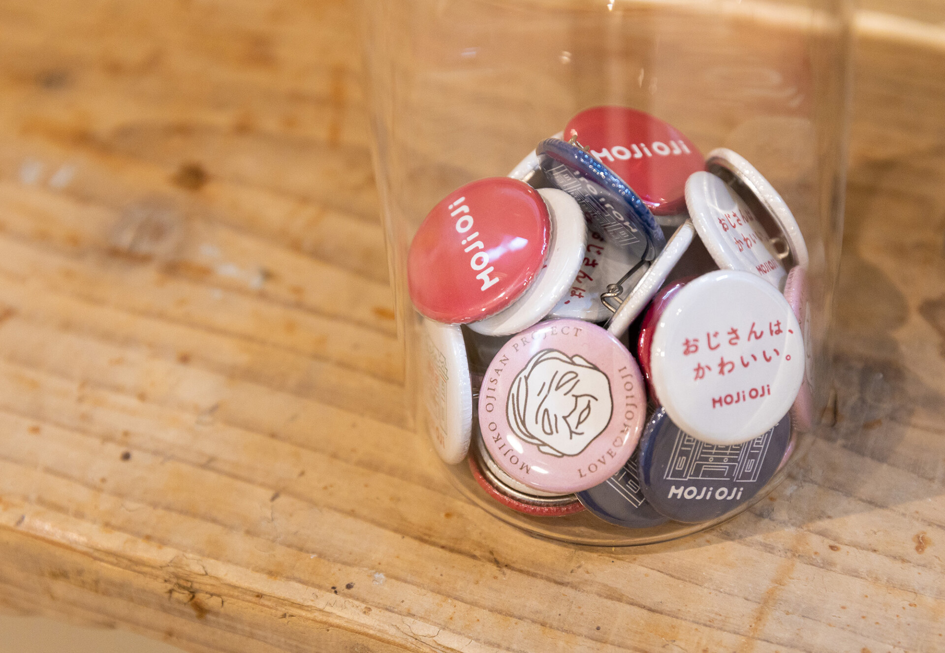 店内には巾着や缶バッジなど、店内でしか買えないオリジナルグッズも。「おじさん」があしらわれたかわいらしいグッズは必見ですよ。
