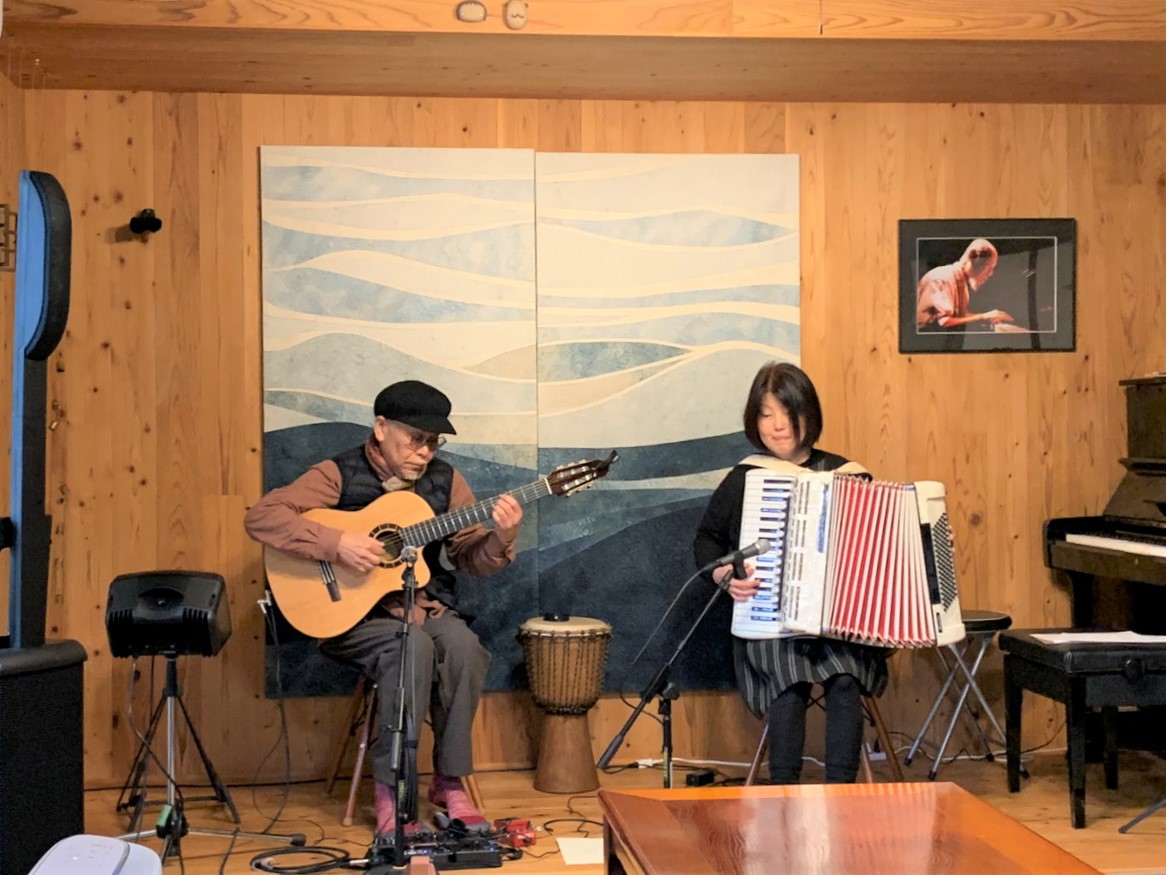 心象風景をオリジナルの楽曲で表現するアコーディオンとギターのデュオユニット「wind rumor」。アコーディオンはなかむらあきこさん、ギターはオザワマコトさんです。