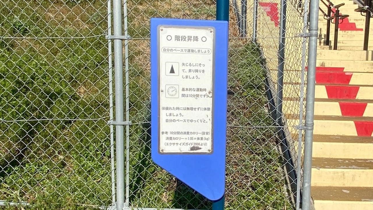 階段下の広場には、子ども用の遊具はもちろん、健康遊具もいくつかありました。