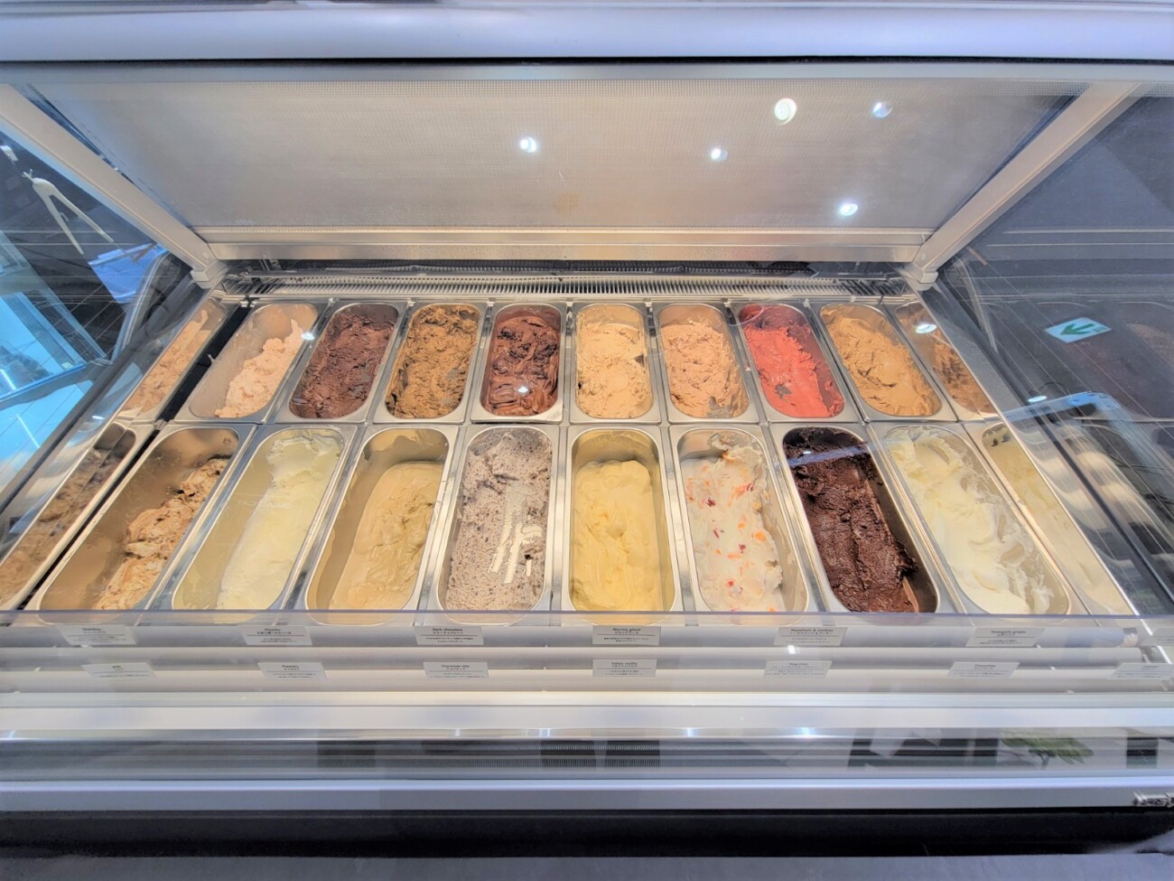 ジェラートは「シングル」(テイクアウト529円・イートイン539円)、「ダブル」(テイクアウト745円・イートイン759円)、「トリプル」(テイクアウト853円・イートイン869円)。追加料金で「チョコレート」「ベリー」「キャラメルナッツ」の3種類からコーントッピングも選べます。