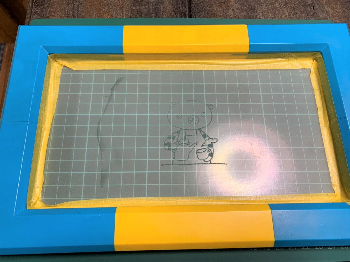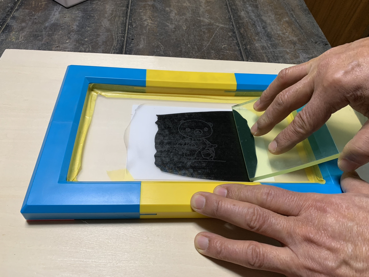 スクリーンにインクをのせた後は、スクイージーという道具を使ってインクを伸ばします。
