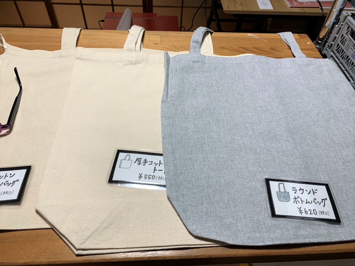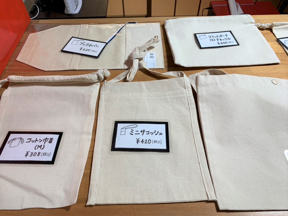 同店ではコットン素材の巾着やトートバック、Tシャツなどの生地にオリジナルのデザインを印刷してオンリーワンのグッズを作ることができます。