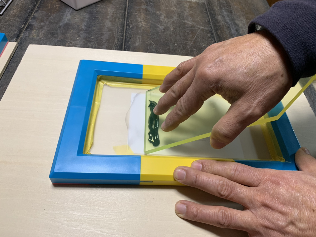 実際にシルクスクリーンを使って印刷する体験をさせてもらいました。