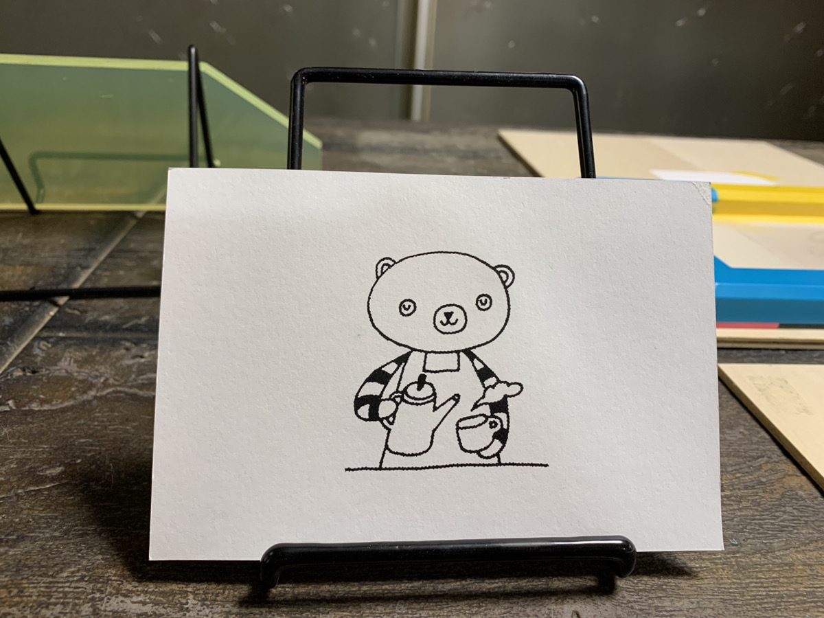 体験ワークショップのデザインは店主・夕佳さんのデザインで、マスターがモデルのくまさん。マスターの淹れるコーヒーはまた格別においしく、リマポエポエ店舗でいただくことができます。