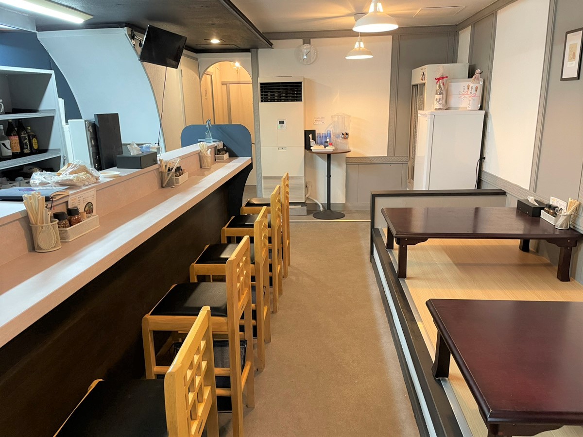 店内は開放的で圧迫感のない寛げる内観。カウンター5席と小上がりに4人で座るのにちょうどいい座卓が2卓。小さい子ども連れの人もこれなら安心ですね。