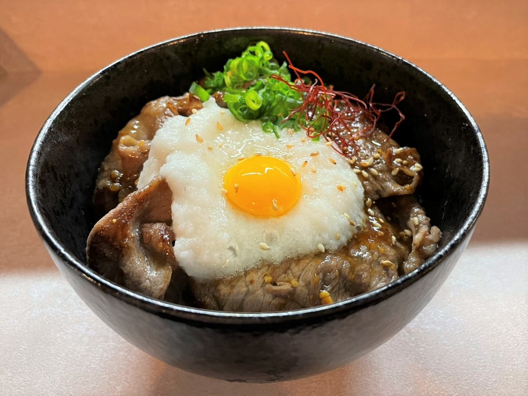 「とろ牛丼」では、とろろ、ご飯によく合うようにオーダーカットされたステーキ用ロース肉が楽しめます。