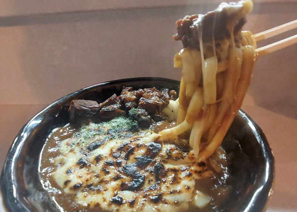 門司港ならではのコラボ商品として産声をあげた、焼きカレーにちなんだ「炙りチーズカレーうどん」も見逃せない一品です。