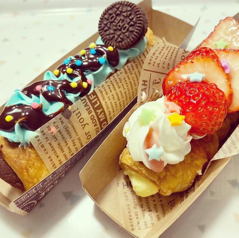 販売しているのは、サクッとした生地の「こるね」。試行錯誤してこだわりを持ったクリームの一番人気はカスタード、最近では抹茶や期間限定のあまおう苺も人気です。