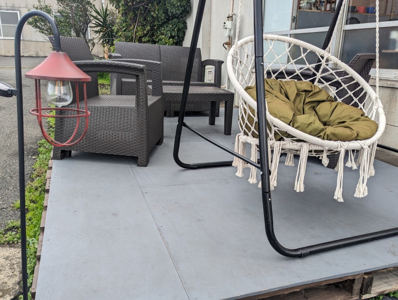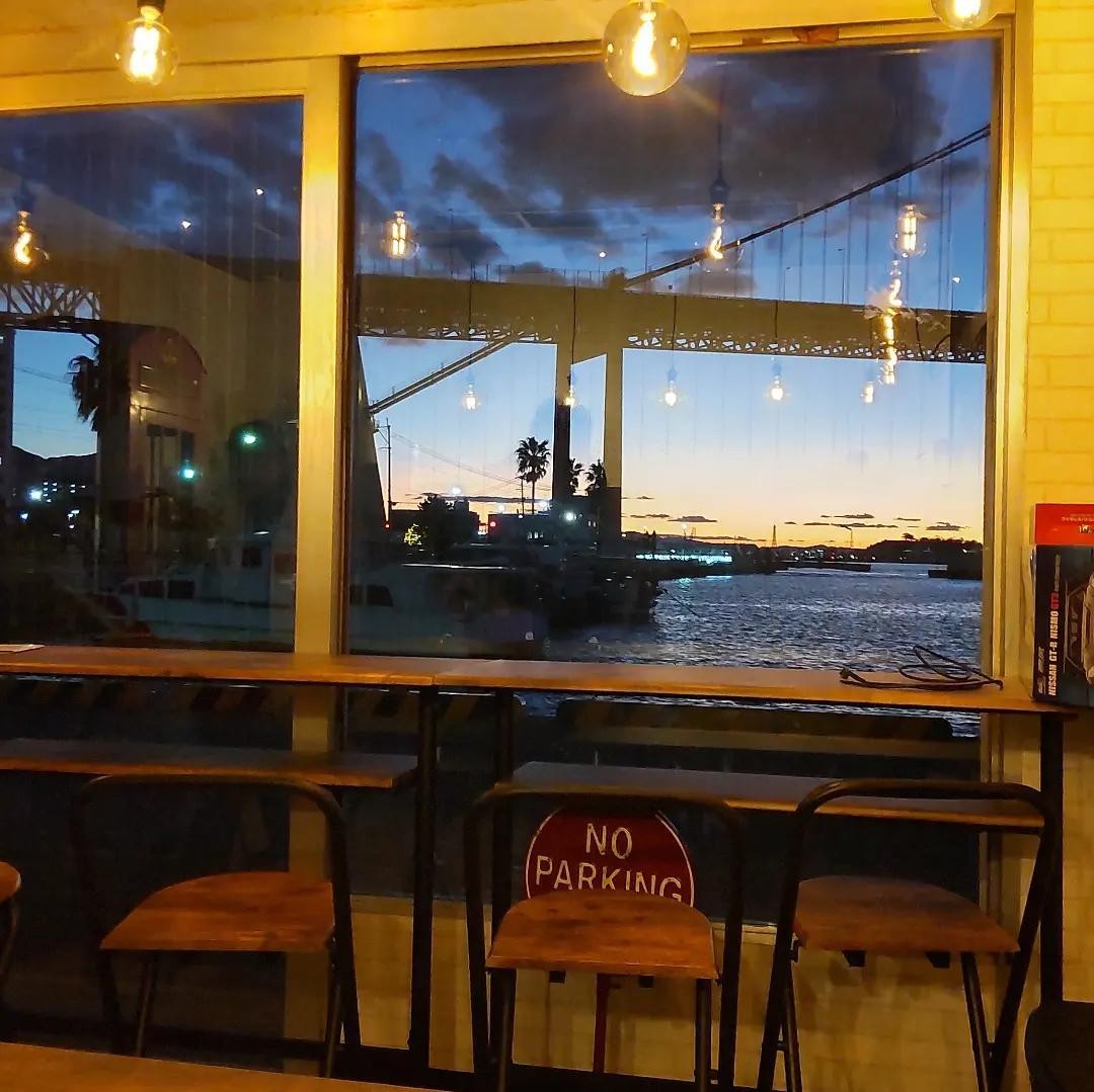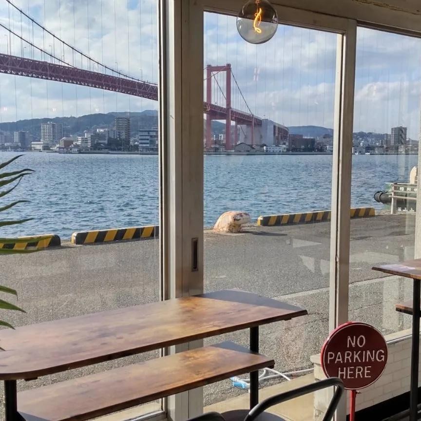 店内は大きな窓のガラス張りでどの席からも若戸大橋が見えるようになっており、カウンター席の他、テラス席、店隣に大きなベンチの席が4つあります。