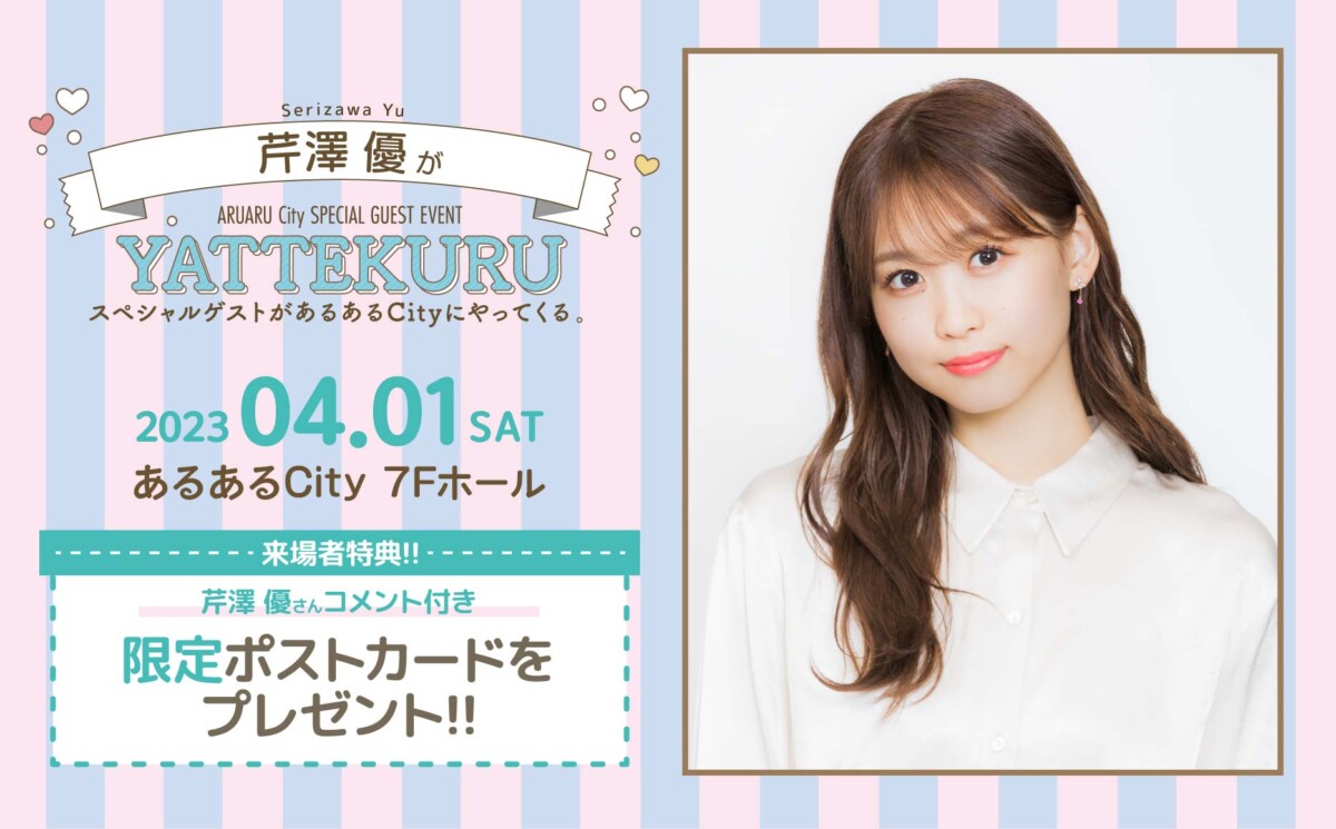 4月1日には、「芹澤優がYATTEKURU」が開催されます。芹澤優さんは、アイドルグループi☆Risとしても活躍していおり、出演作には『ビルディバイド』(キッカ 役)、『キラッとプリ☆チャン』(赤城あんな役)などがあります。