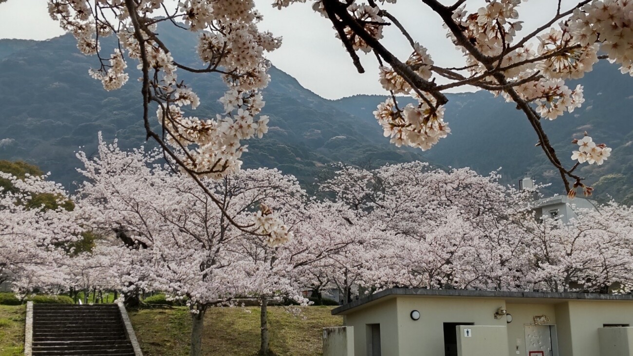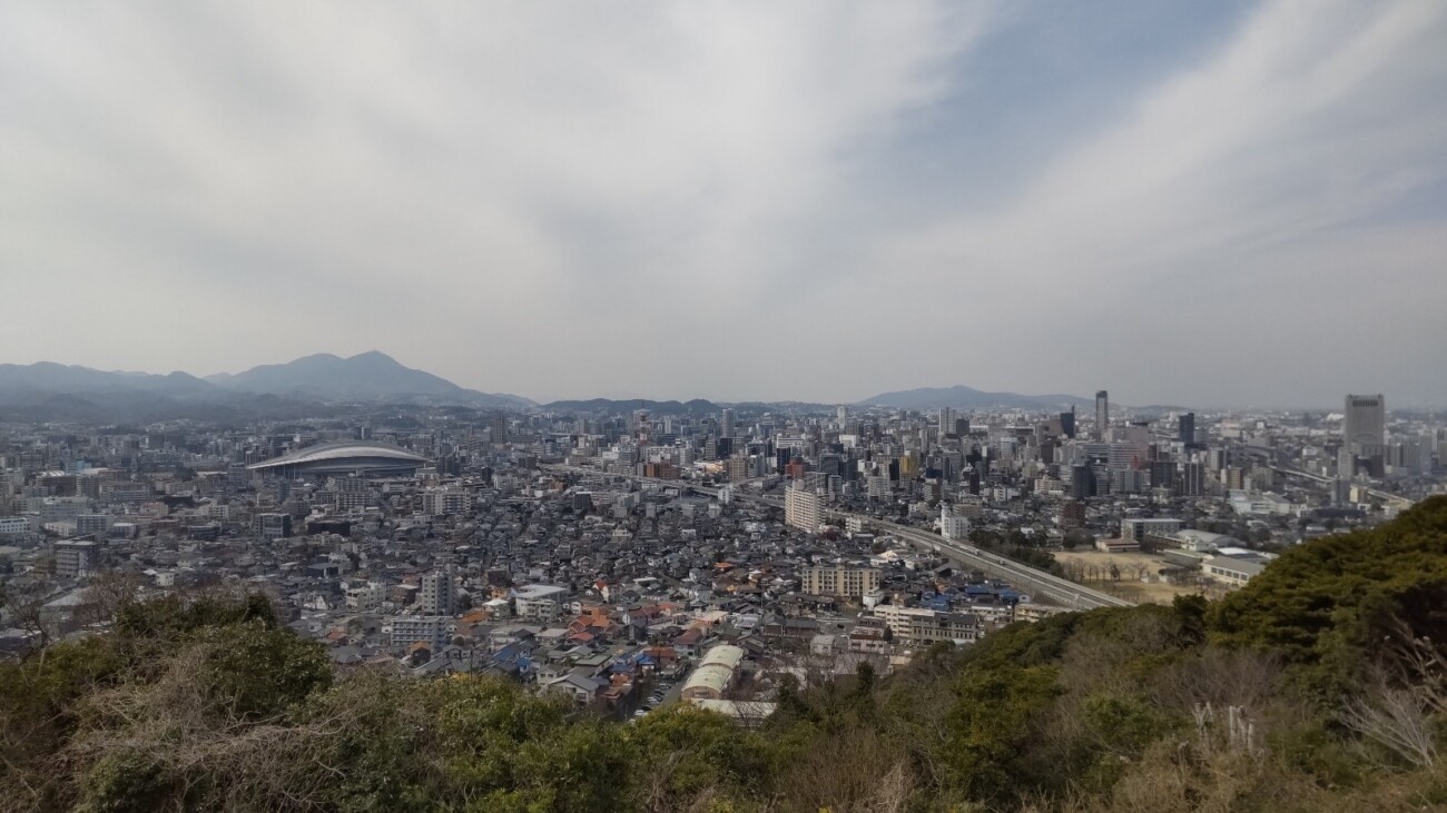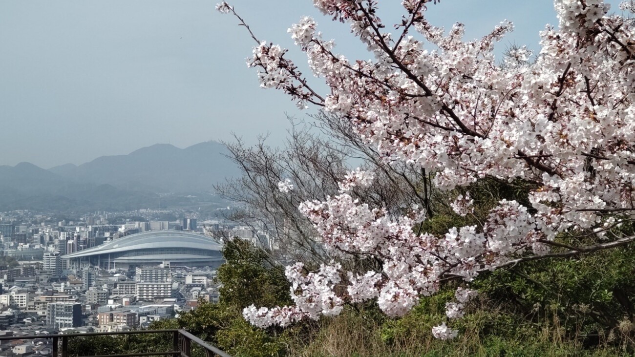 足立公園は展望広場から下に下り、桜の馬場や平和公園まで約3kmの広い公園です。公園の展望広場へは車でも行け、車から降りずに小倉の街を一望できます。