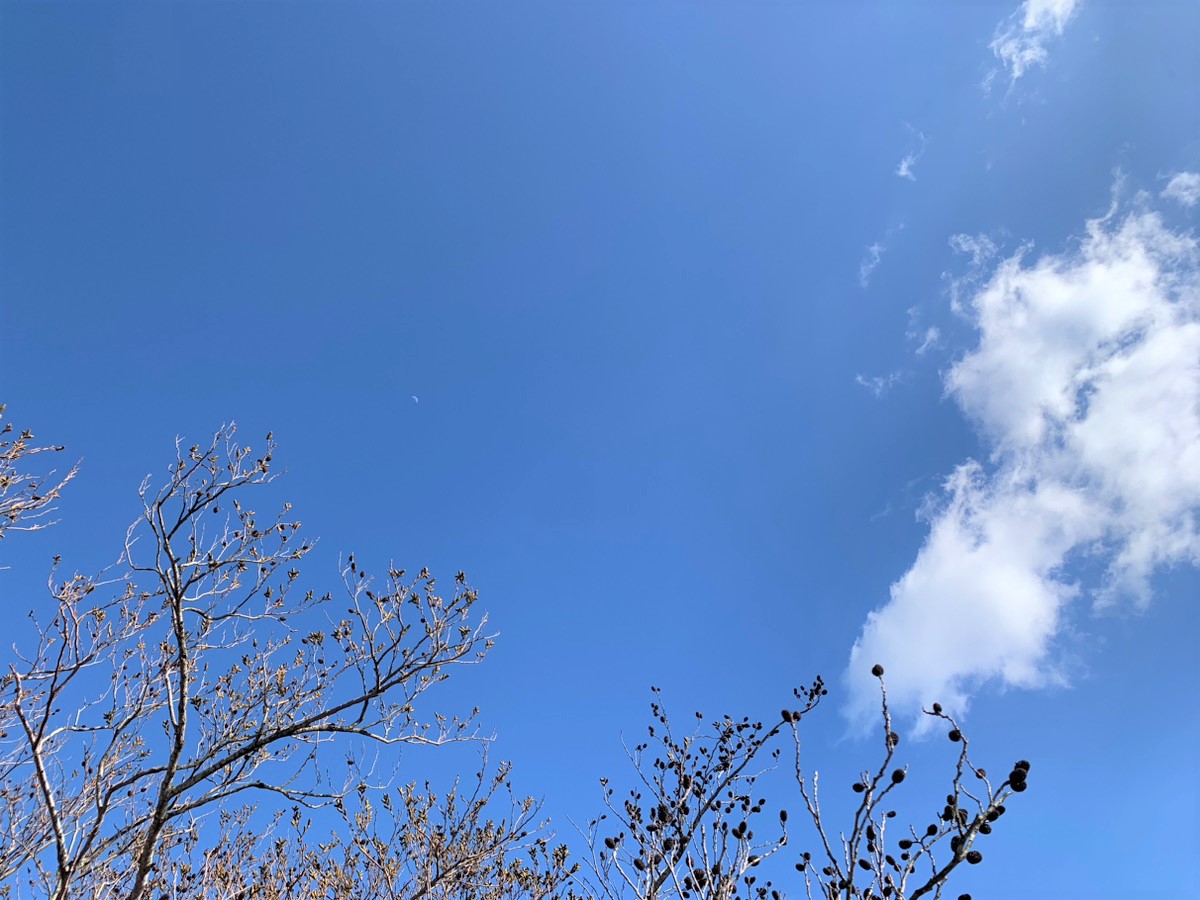 この日はヤシャブシの木越しの空に上弦の月が微笑んでいました。