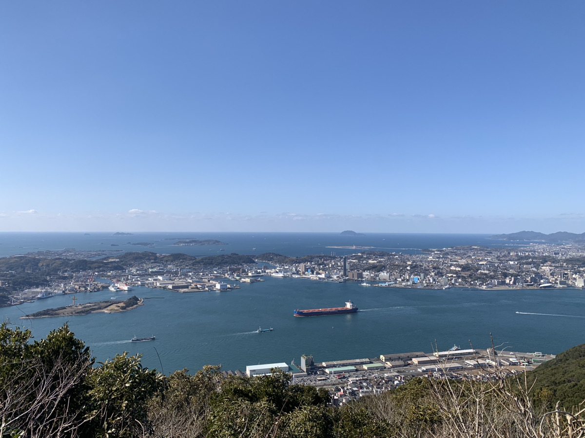 山頂までの小路を抜けると、目の前に広がるのは「関門海峡」はじめ、下関市の巌流島や彦島など。遠くには六連島も見ることができます。