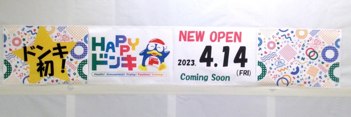 そのドン・キホーテが新しい形態「HAPPY ドンキ サニーサイドモール小倉店」として、4月14日、小倉南区・サニーサイドモール小倉(北九州市小倉南区下曽根新町10-1)に出店するようです。