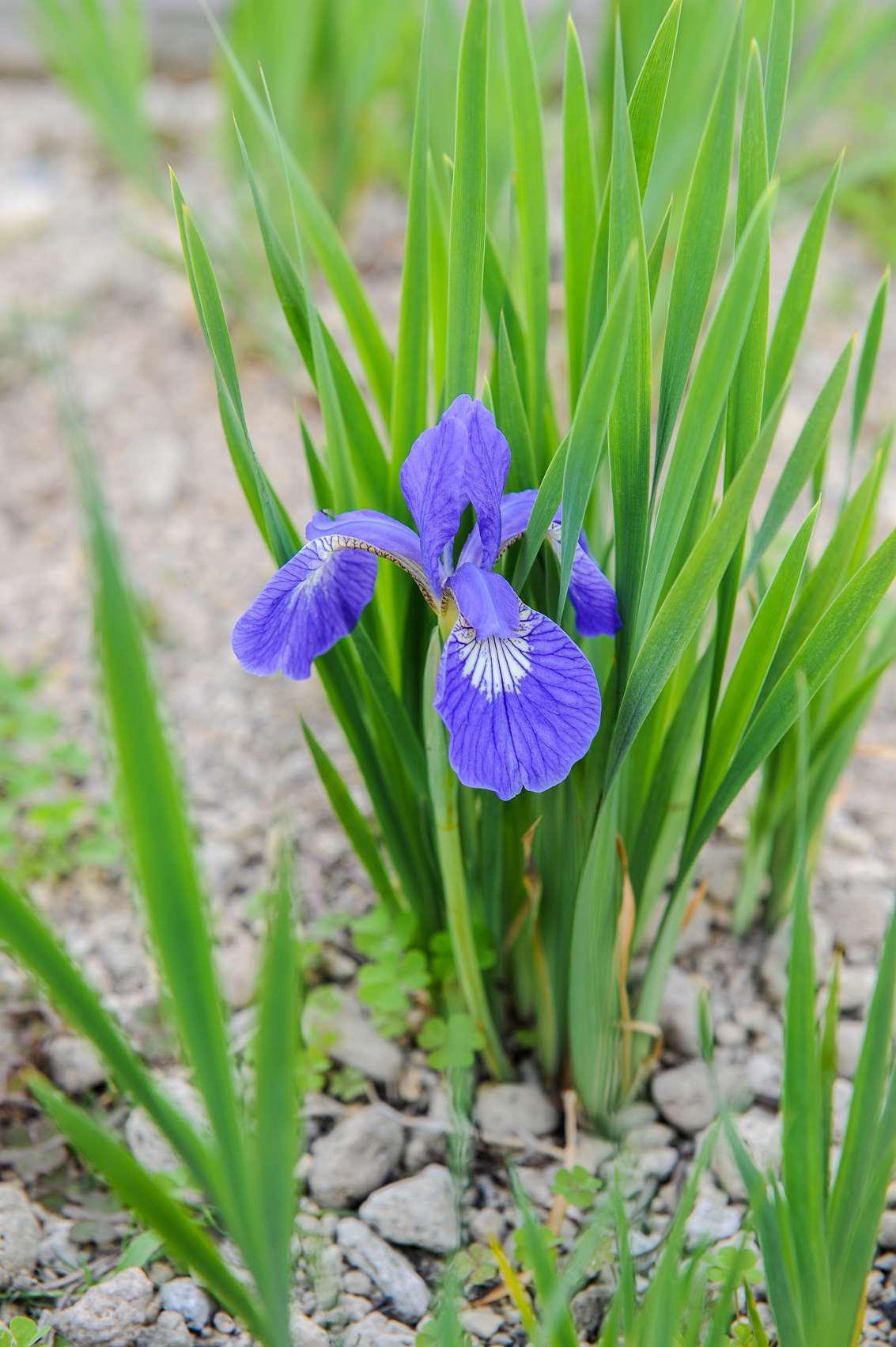草丈が10センチから15センチくらいになりますが、普通のあやめと比較してずっと小型です。花茎は短く、葉丈より低く花が咲き、花色は紫、まれに白が出るとのこと。また、花が終わると、葉丈が30センチ程に長く伸びるのも大きな特徴です。