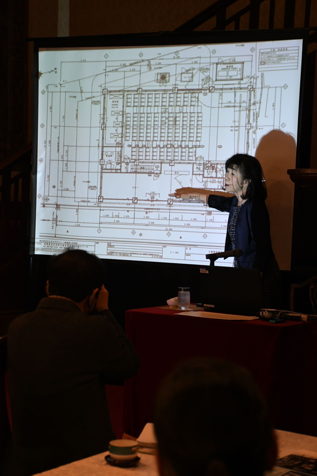 新しい小倉昭和館の再建構想を語る樋口智巳館主 (2023年3月・北九州市戸畑区の西日本工業倶楽部)