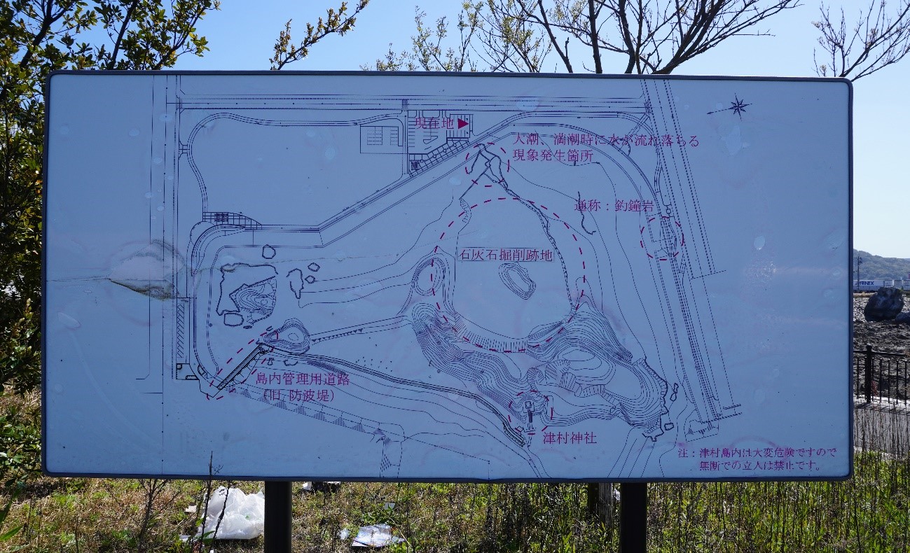 この津村島は昭和の初期には石灰石の鉱山として栄えていて、明治時代末期ごろから移住者が増え、最盛期は200人余もの島民が住んでいたとのこと。