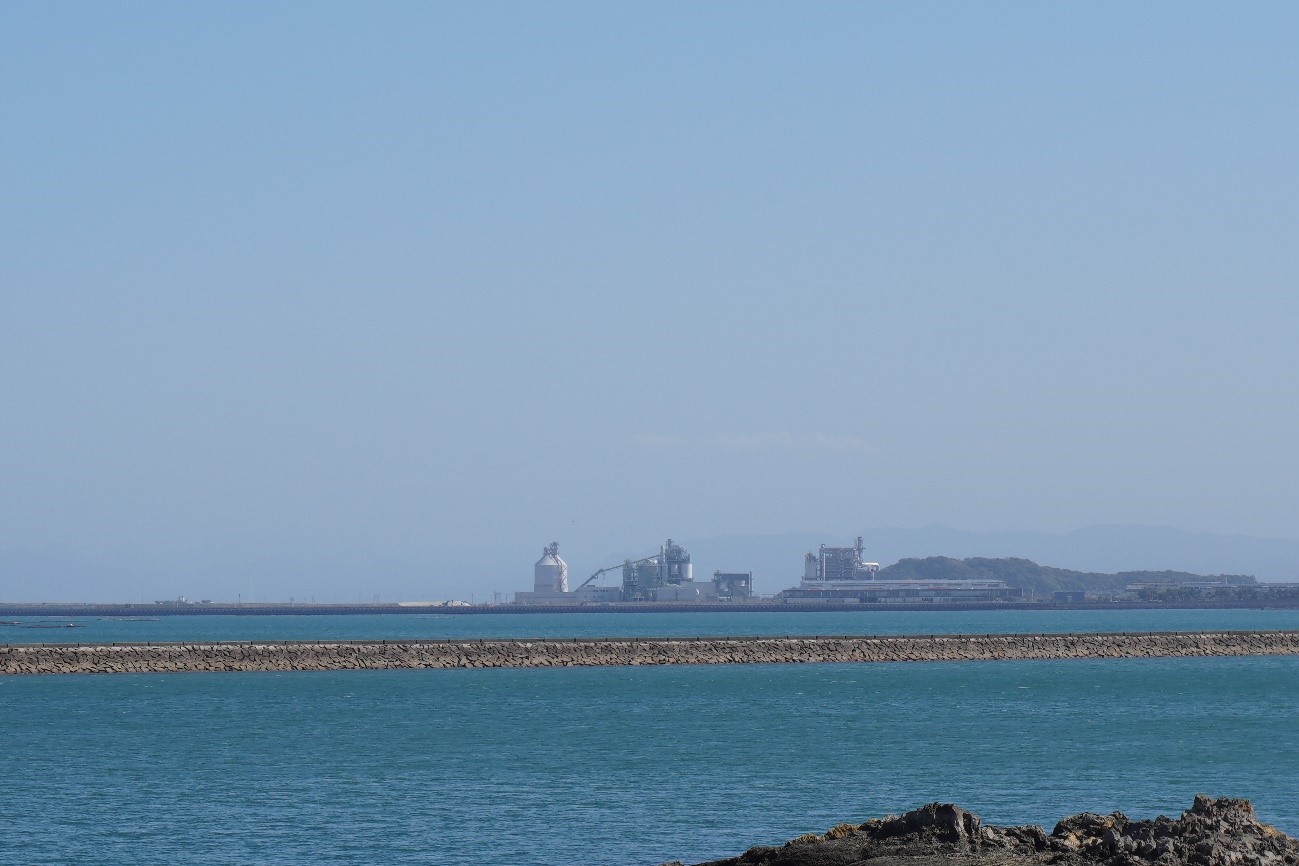 苅田の工業地帯の向こうに浮かぶ神ノ島