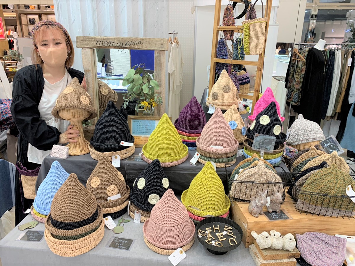 「momayorrr/emis」店主の新田さんは編み物作家であり、「モマヨ」という店名のとんがり帽子屋さんでもあります。作家活動をはじめたのは2016(平成28)年頃、これまではイベント出店やオーダー品の作成等、店舗を持たずに活動していましたが、この春、北九州市の取り組みを知って、書類審査や面接を受けたのち、見事採用され、実店舗を持つ運びとなったそうです。