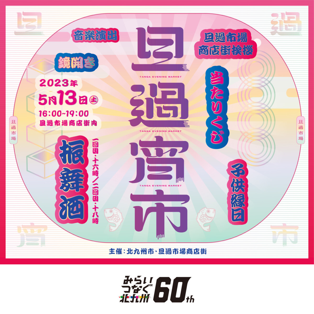 「旦過市場と市民の皆様との『約束と絆の感謝祭』。多大なる支援をいただき旦過市場は前進していく事をお約束します。旦過宵市ではいつもと違う夕暮れ時の市場をお楽しみいただけます。これまで旦過市場に馴染みのなかった方もぜひお越しください」とのことです。
